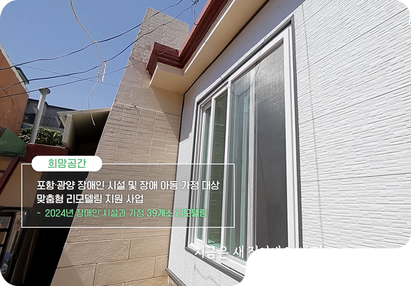 (포항 18명, 광양 28명, 기타 74명)포항·광양 지역의 열악한 환경에 있는 장애인 시설·가정과 제철소 자매마을의 노후 공공시설을 리모델링하여 Barrier-Free와 Universal Design을 접목한 새로운 희망의 공간으로 탈바꿈할 수 있도록 지원합니다.